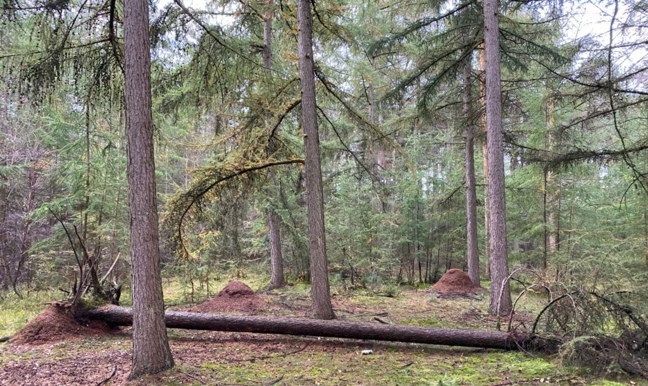 Magda van der Voet stuurde mij een foto met grote hopen zand, afgedekt met naalden. Ze vroeg zich af wat dat zijn. Deze vraag snap ik wel, want op afstand en ook bij kouder weer zie je geen leven op die hopen. Toch zijn het allemaal mierenhopen van rode bosmieren, of ze nu groot of klein zijn. De kleine zullen beginnende staten zijn en de grote de oudere. Dat de rode bosmieren zulke nesten of koepels bouwen is logisch, want koepelbouw geeft meer zonlicht dan de bouw van een vlakke hoop. Aan de rand van vooral dennenbossen vind je vaak deze koepels, die afgedekt zijn met duizenden dennennaalden. Binnen in die koepels leven honderdduizenden rode bosmieren in ingenieuze gangenstelsels. In tegenstelling tot de honingbijen, die verwant zijn binnen een zelfde orde, leven meerdere koninginnen in één zo’n koepel. Die koninginnen zijn heel hun leven enkel bezig met het leggen van eitjes. Werksters doen de rest, namelijk koepelverzorging, bescherming van de kolonie en het voeden en opvoeden van larven. Tot slot zorgen zij ook voor grote groepen bladluizen, die de mieren de bekende zoetstof leveren. We noemen dat bladluizen melken.
