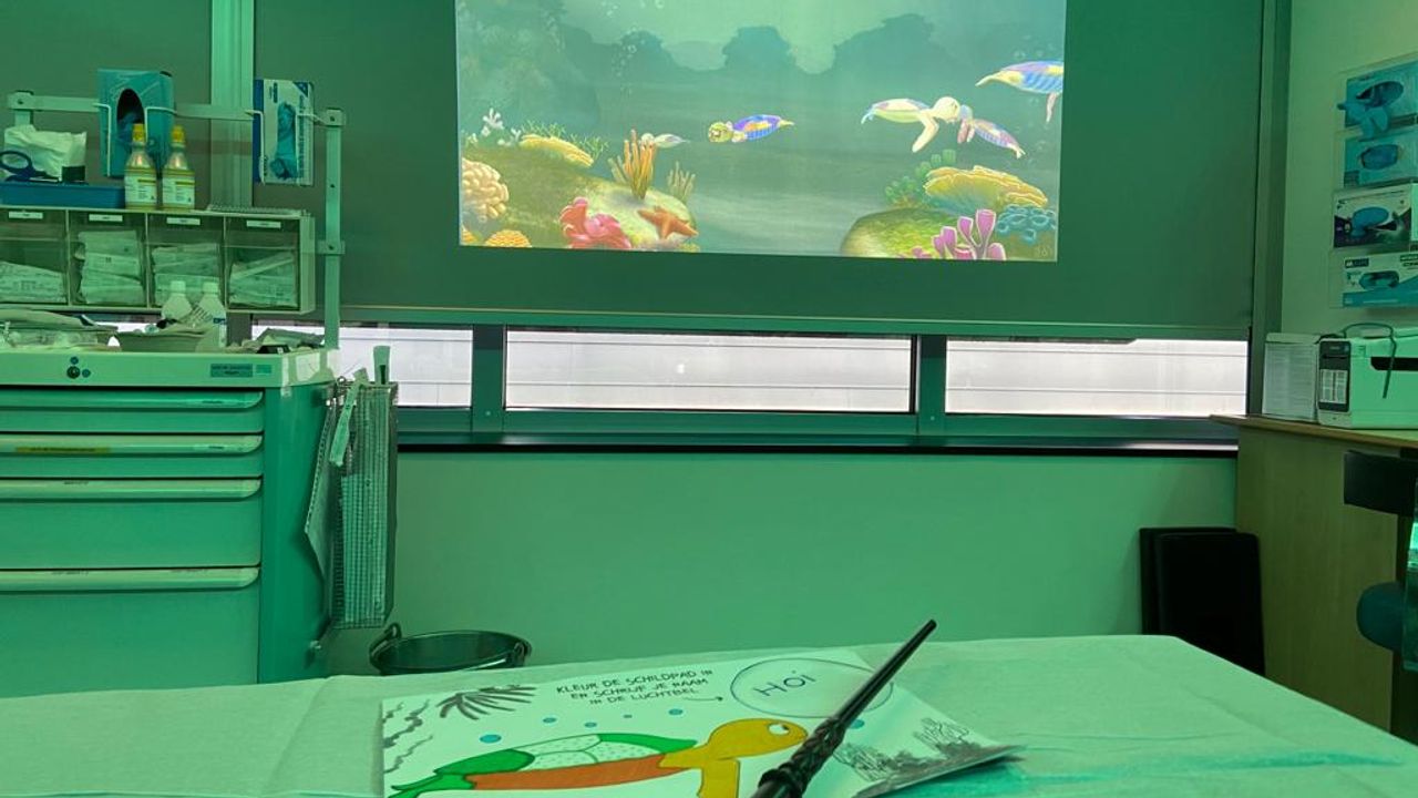 Dankzij de combinatie van beamers en lichteffecten krijgt het verblijf in het ziekenhuis iets magisch voor jonge patiëntjes. “Ze kunnen kiezen uit verschillende belevingswerelden zoals een aquarium, dierentuin of de Efteling. Kinderen gaan er helemaal in op en ze ervaren daardoor minder stress, angst of pijn”, legt kinderarts Marijke van Aken uit.