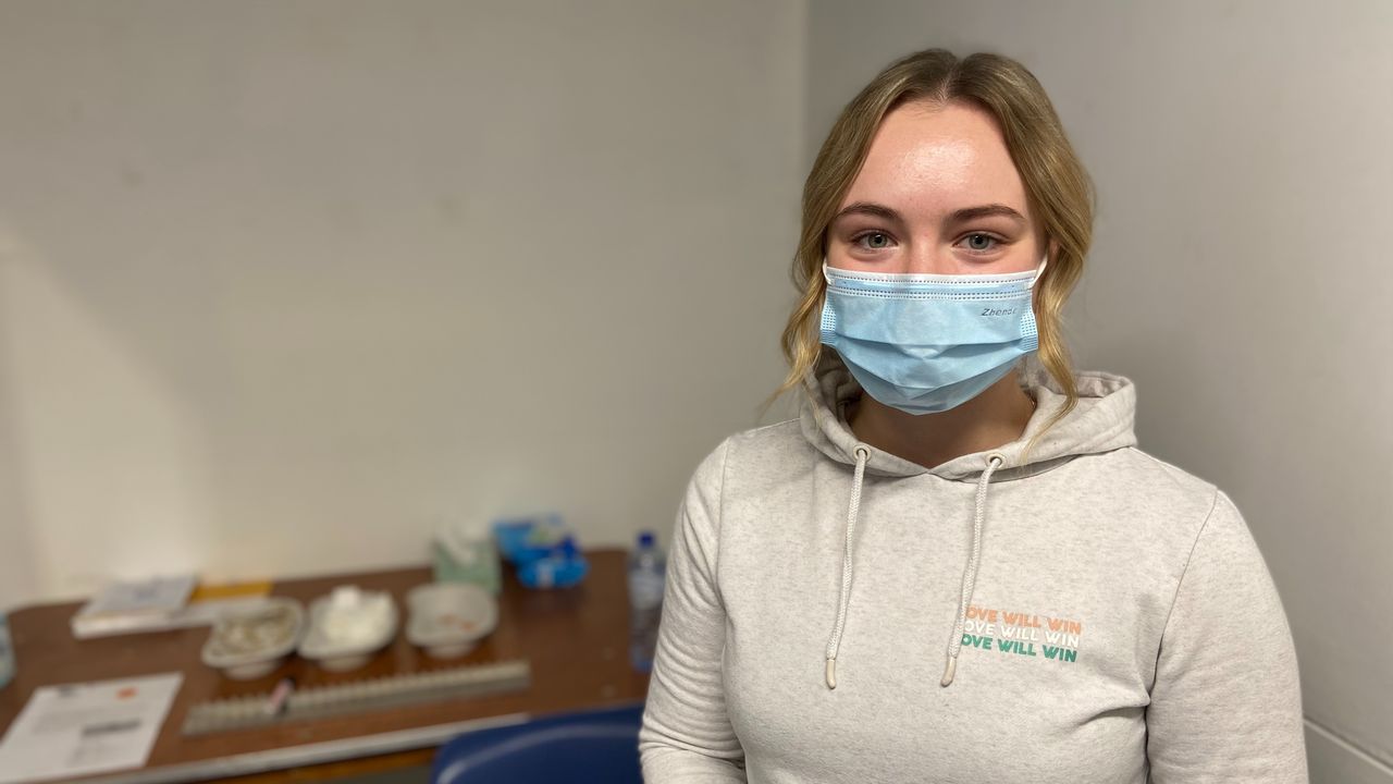 “Ik wilde de prik eigenlijk helemaal niet halen en sta hier dus met een beetje tegenzin. Vriendinnen kregen menstruatieklachten na het halen van hun vaccinatie dus daar was ik ook bang voor. Nu je overal een QR-code moet hebben doe ik het toch maar wel.”