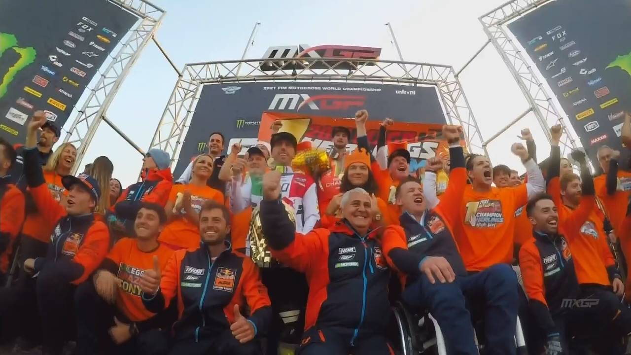 "Veel mensen wisten niet wat ik zou doen als ik deze titel niet zou pakken. Maar dat komen ze nooit te weten", lacht Herlings voor de camera van MXGP.