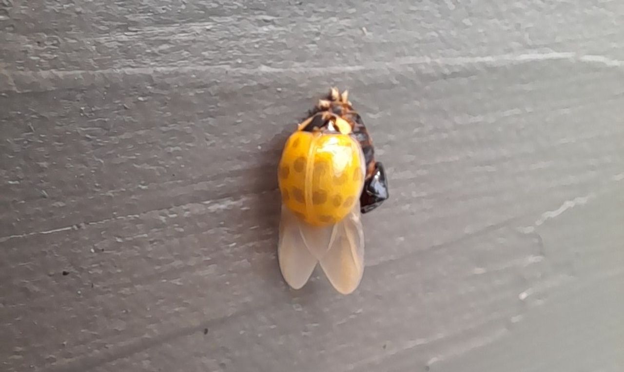 Hans de Jong stuurde mij een foto van een net uit zijn pop gekomen lieveheersbeestje zag het beestje bijkleuren en even later was het diertje verdwenen. Op de eerste foto het verse lieveheersbeestje, zonder stippen. Op foto 2 is het diertje al wat bijgekleurd en zie je al vage stippen. Heel leuk als je dat hebt mee kunnen maken. Overigens gaat het in dit geval om een Aziatisch lieveheersbeestje. Deze insecten zijn 20 jaar geleden ingevoerd in Europa ter bestrijding van bladluizen die de oogsten van fruittelers deden mislukken. Helaas blijkt dit achteraf een grote fout te zijn geweest. Allereerst verdringt de Aziatische de Europese lieveheersbeestjes. Daarnaast zijn het inmiddels plaagdieren geworden, die voor vervuiling zorgen in huizen en ook nog eens de smaak van wijn aantast. Kortom; slechte actie. Meer informatie op deze website