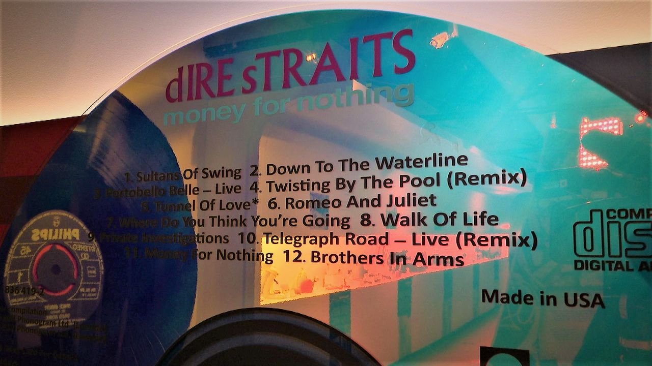 In het Philips Museum aan de Emmasingel in Eindhoven is uiteraard ook ruimte voor de compact disc. Aan de muur hangt een enorme CD van de Dire Straits, de eerste popband die uitkwam op compact disc.