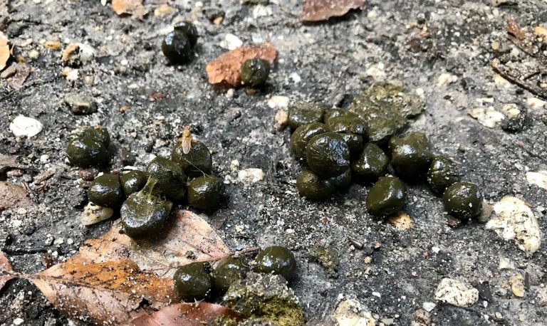 Jeanne Keusters zag in het natuurgebied Sint-Jansberg bij Plasmolen keutels en zij vroeg zich af of die van reeën zouden kunnen zijn. Het waren heel verse keutels, je kon ze nog goed ruiken. Dit zijn inderdaad keutels van een ree. De kleur geeft dit al enigszins aan. Daarnaast de hoeveelheid en ook nog het wat slijmerige geheel wijst hierop. Konijnenkeutels zijn veel droger. Al deze zaken bij elkaar zet je al op het spoor van reeënkeutels, maar wat mij altijd nog meer zekerheid geeft, is dat de keutels van reeën niet echt helemaal rond zijn. Als je heel goed kijkt naar de foto van Jeanne, zie je dat elke keutel een beetje een klein puntje heeft. Dat is heel typisch voor een reeënkeutel.