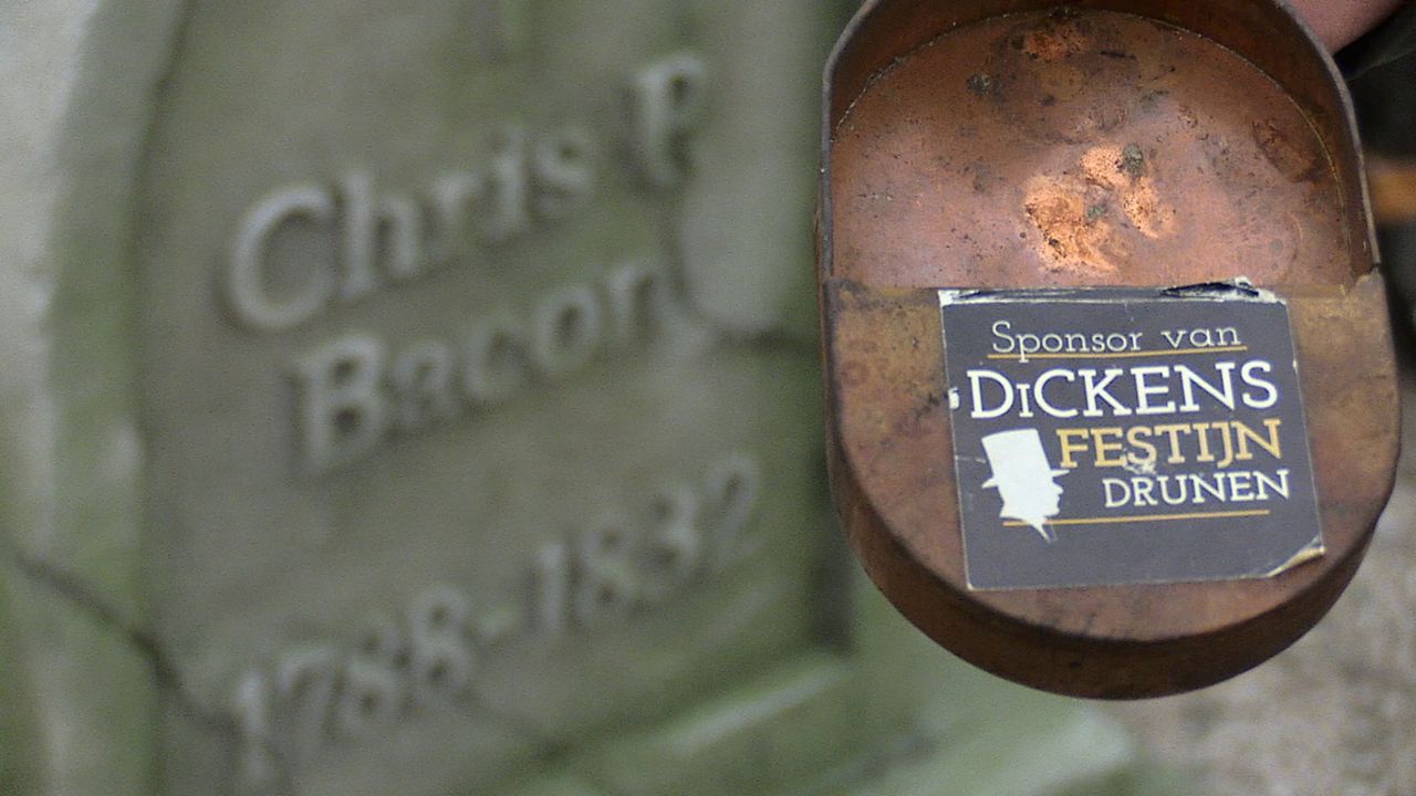 Twee jaar geen Dickensfestijn betekent ook twee jaar geen inkomsten, maar Van der Steen heeft de oplossing. “Dit is het ouderwetse centenbakkie”, vertelt hij bedelend met het bakkie dat vooral wordt gebruikt door orgelmannen. “Dat bakkie gaan we nodig hebben om volgend jaar weer een Dickensfestijn te kunnen organiseren.”