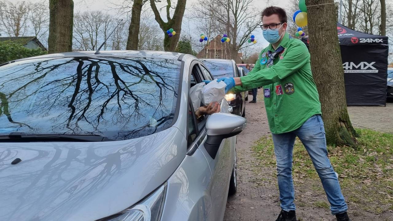Het is het tweede jaar dat de scoutinggroep de oliebollen uitdeelt via een drive-thru. "Ik ben blij dat dit nog wel kan nu er heel veel niet mag", vertelt Wouter de Graaf van de scouting. "Maar mensen zeggen wel dat ze de wachtrij vroeger zo gezellig vonden. Ik begrijp dat stukje nostalgie wel."