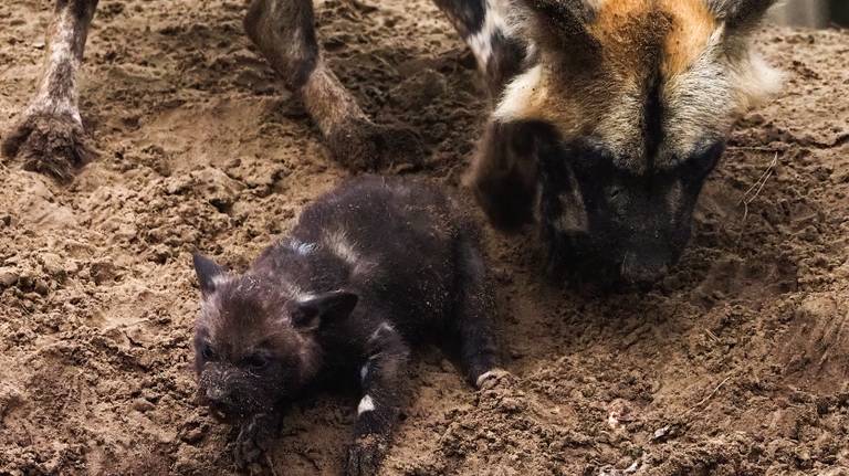 Er zijn drie puppy's van de Afrikaanse wilde hond geboren in safaripark Beekse Bergen. De diertjes maken het goed. De Afrikaanse wilde hond staat erg onder druk. Er lopen nog maar een paar duizend van de dieren in het wild rond.