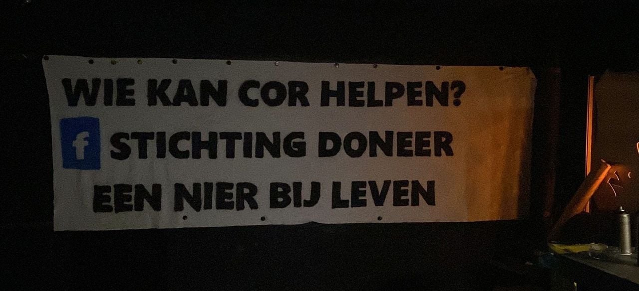 Groot spandoek bij NAC: vrienden helpen zieke Cor bij zoektocht donornier