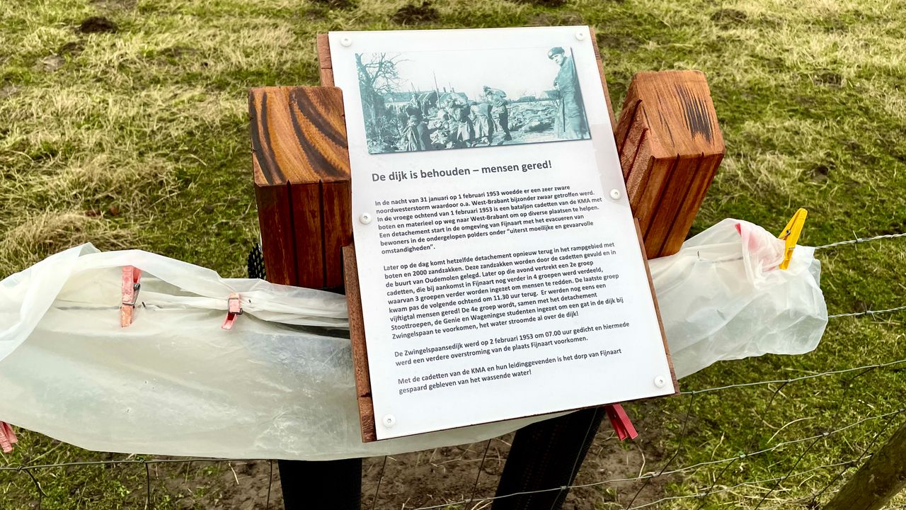 De plaquette langs de Zwingelspaandedijk is de zesde in een toeristische fietsroute die dit deel van West-Brabant moet herinneren aan de verschrikkelijke ramp, die in de nacht van 31 januari op 1 februari aan 247 Brabanders het leven ontnam. Een ramp waarover steeds minder mensen uit eigen beleving het verhaal kunnen vertellen.