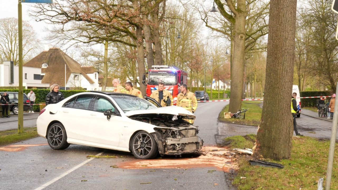 De auto kwam bij de poging om uit te wijken tegen een boom tot stilstand. De voorkant van een auto raakte zwaar beschadigd.