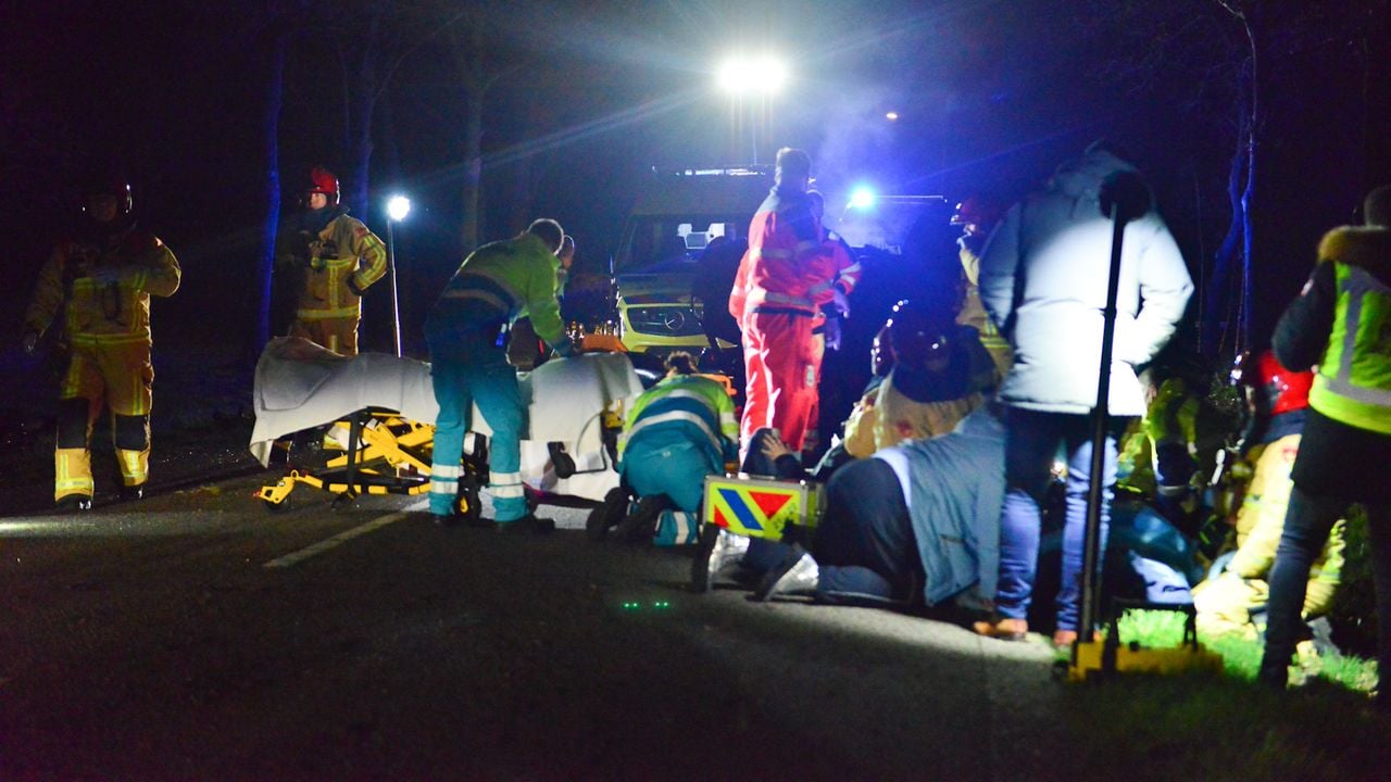 De auto zou van de weg zijn geraakt tijdens een inhaalmanoeuvre in een flauwe bocht. De auto raakte vervolgens een boom langs de weg en sloeg over de kop.