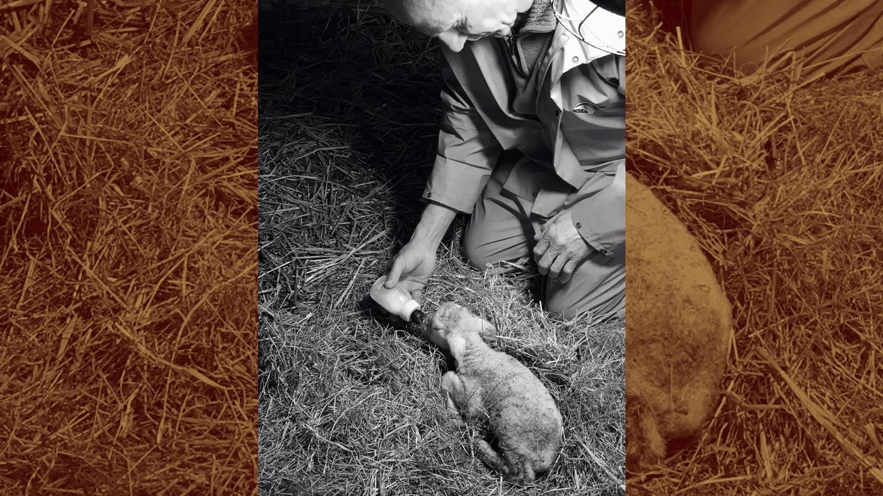 "Mijn vader wist dat het schaap deze week moest lammeren, vanmorgen zag hij het eerste lammetje in de wei tevoorschijn komen. Hij heeft het schaap en het lammetje naar binnen gebracht vanwege de kou, zodat ze rustig in de schuur kon bevallen."