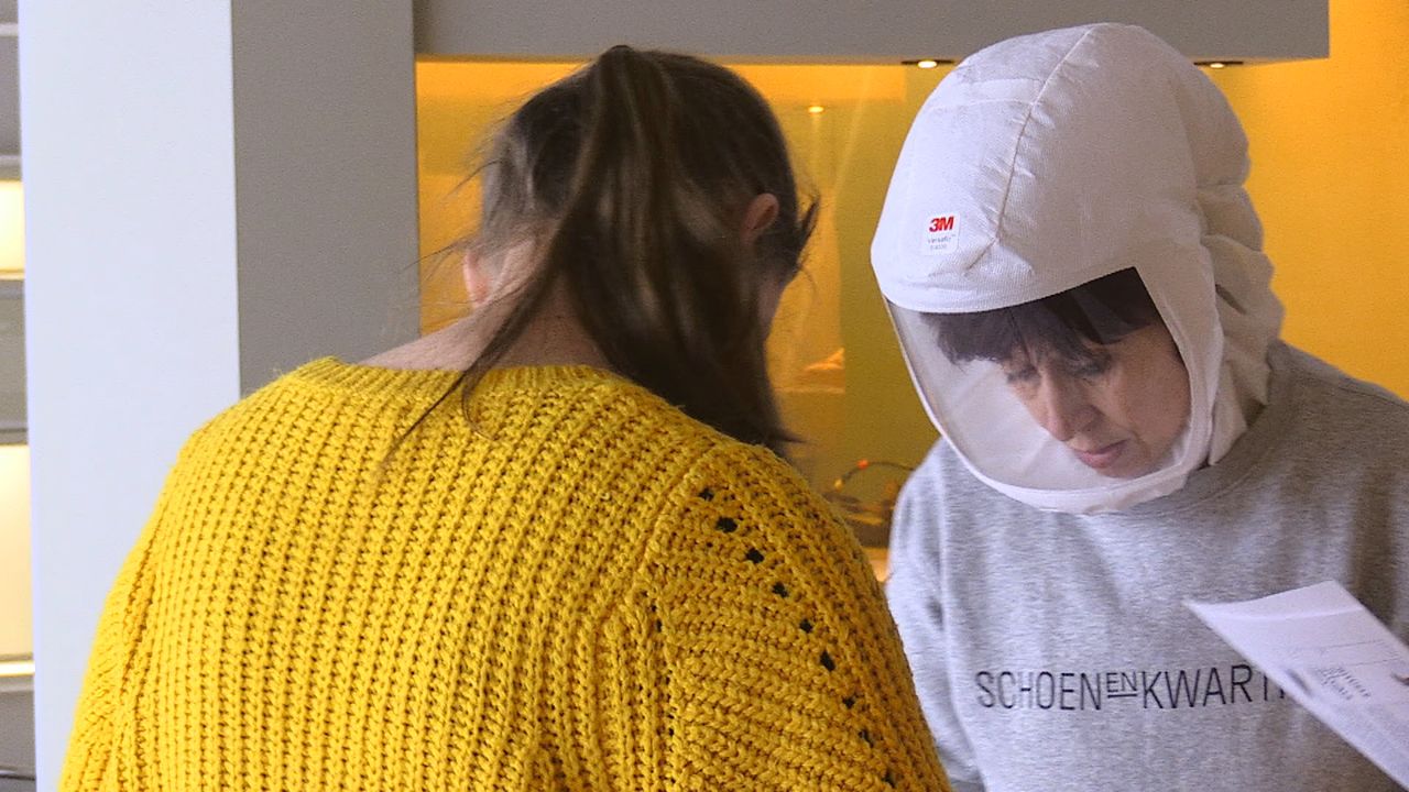 De collega's en vrijwilligers van Het Schoenenkwartier zijn gewend aan haar bijzondere outfit. "Maar, soms schrikken mensen van hoe ik er uitzie, maar ze reageren altijd wel heel meelevend." Buiten, in de frisse lucht, gaat het nog redelijk en hoeft ze haar speciale outfit nog niet aan. "Maar een mondkapje dragen is voor mij al vijf jaar lang dagelijkse kost", vertelt ze.