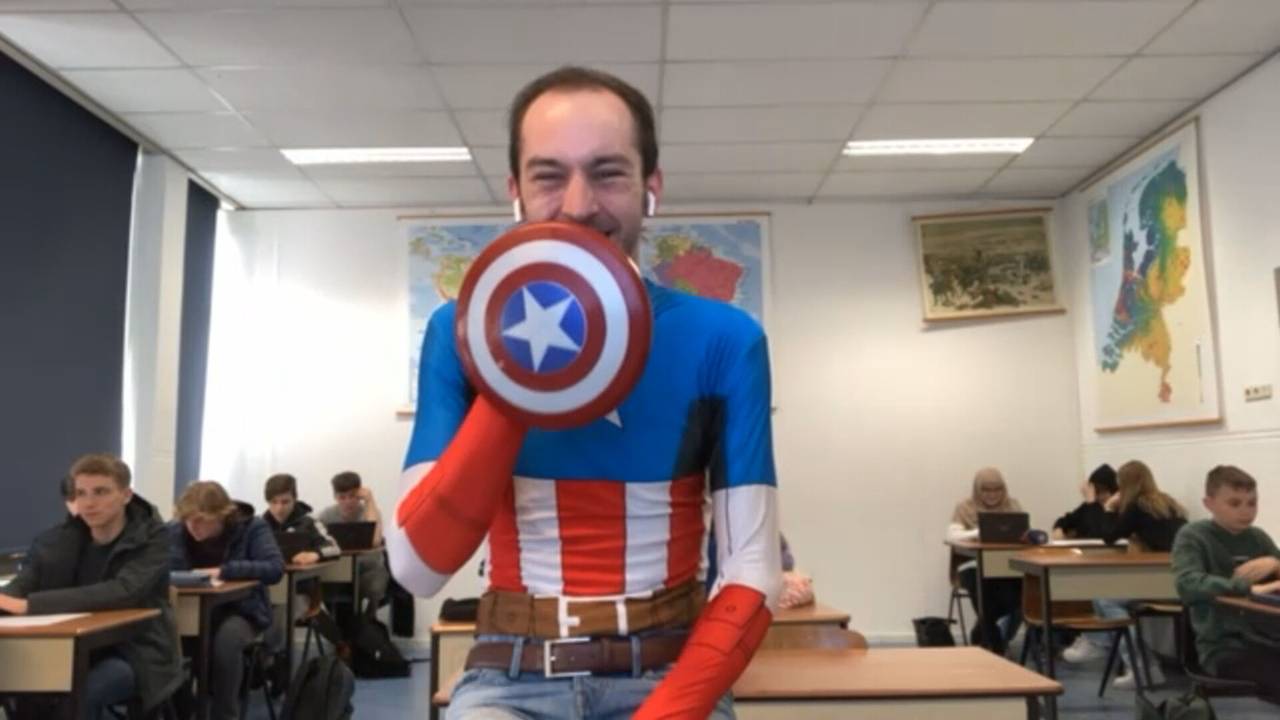Youri staat als Captain America voor de klas: 'Het pakje zit wel wat strak'