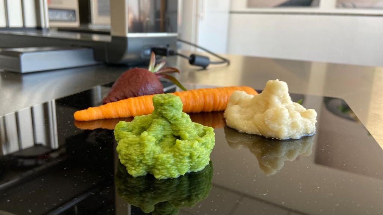 De broccoli, bloemkool en worteltjes in het laboratorium van Gastronology 3D Foods in Bergen op Zoom zijn niet van echt te onderscheiden. Maar schijn bedriegt want deze groentes zijn allemaal met een lepel te eten. Daarvoor zijn ze eerst gekookt en daarna terug geprint in de vorm van de betreffende groente.