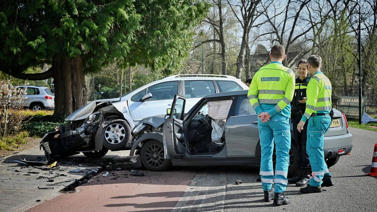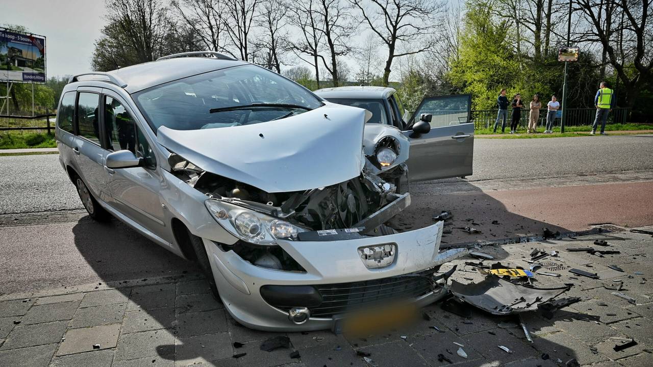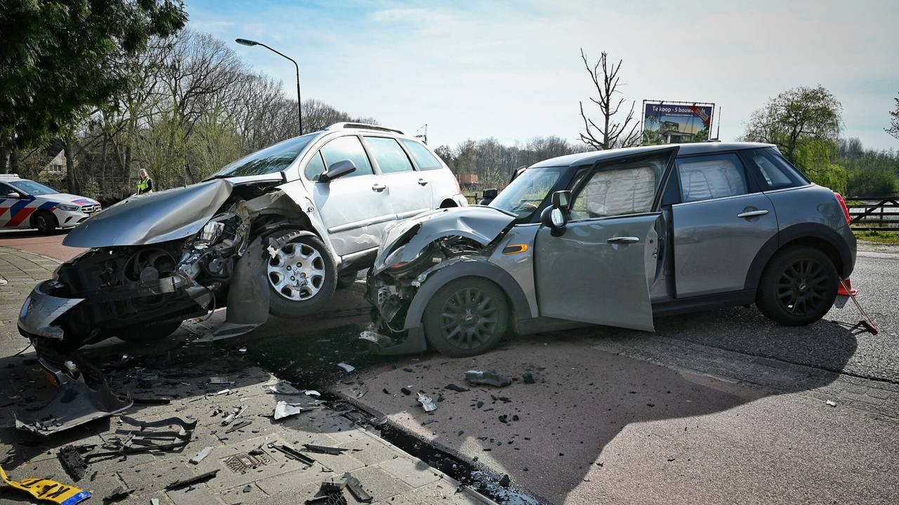 De weg lag na de crash bezaaid met onderdelen. Een van de auto's zou total loss zijn. Door de ravage was de weg tijdelijk afgesloten.