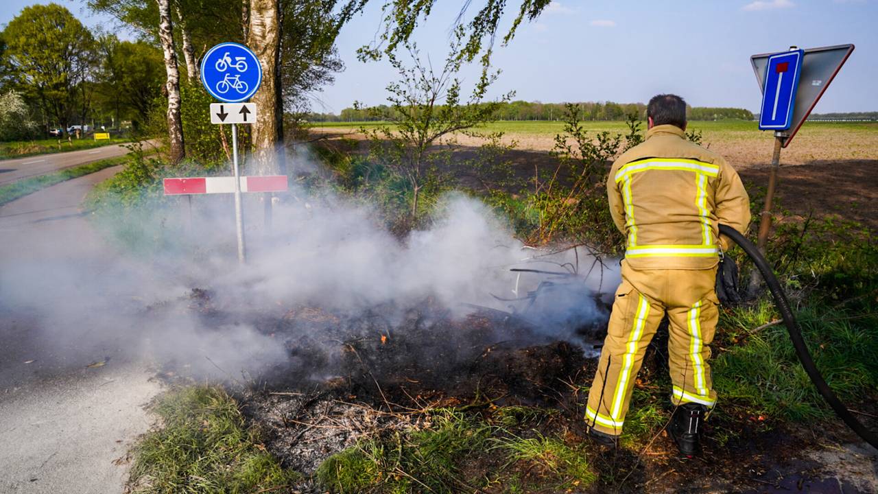 Oplettende buurtbewoner ontdekt bermbrand en doet alvast voorwerk