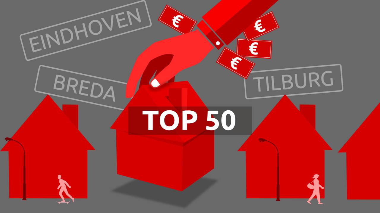 We vroegen het Kadaster de vijftig grootste particuliere, actieve pandjesbazen van Brabant in kaart te brengen. Actief wil zeggen dat ze het afgelopen jaar minstens één woning hebben gekocht en dus nog steeds bouwen aan hun imperium.
