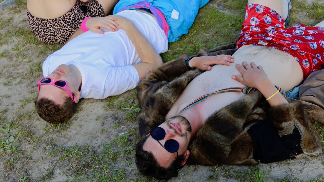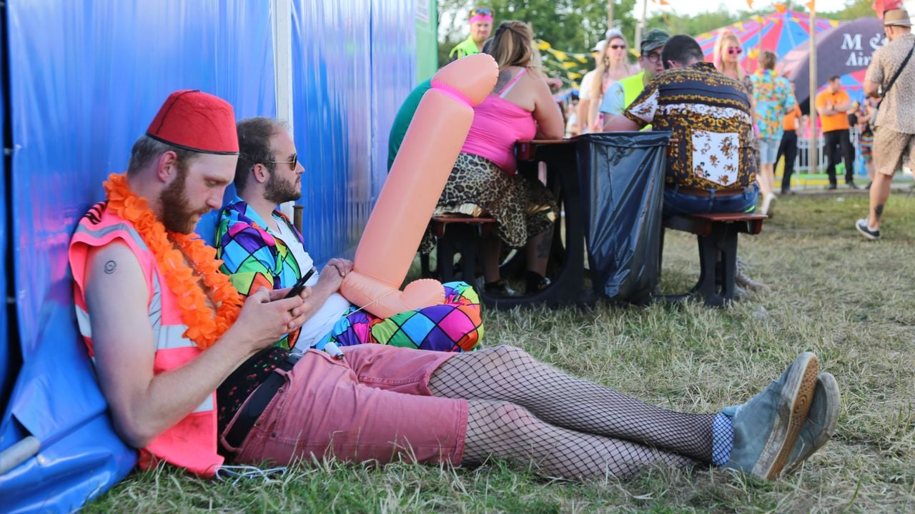 Op het festival zijn opvallend veel Belgen, zo ook Warre (21) en z’n vrienden uit Kortrijk. Het is de eerste keer voor ze op Kamping Kitsch. Wat het zo'n feest maakt? “Alleen maar liefde”, hij vormt een hartje met z’n handen en danst weer verder op muziek van K3 in de ‘Slipjes& Slippertjes’-tent.