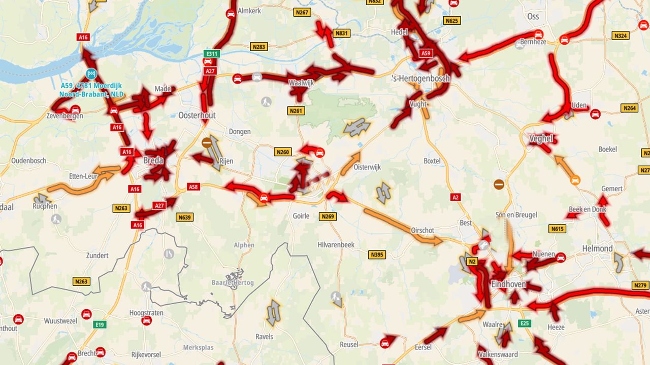 Zo zag Brabant er dinsdag op het hoogtepunt van de ochtendspits uit: