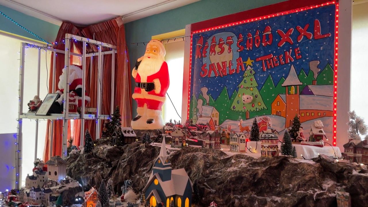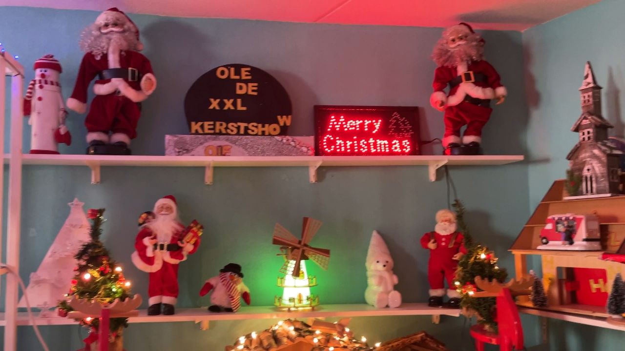 In de woonkamer van Theo kan je nog net tussen de spullen doorlopen. Er is alleen nog ruimte voor een kleine zithoek. Verder wordt de hele woonkamer, inclusief de keuken, in beslag genomen door kerstspullen. Daarbij hoort natuurlijk ook veel kerstverlichting. Met de uit de pan rijzende energieprijzen misschien toch een probleem. Maar dat maakt Santa Theo niets uit. " Overdag en als ik alleen ben dan zet ik de lampjes wel uit, maar ja het is een hobby".