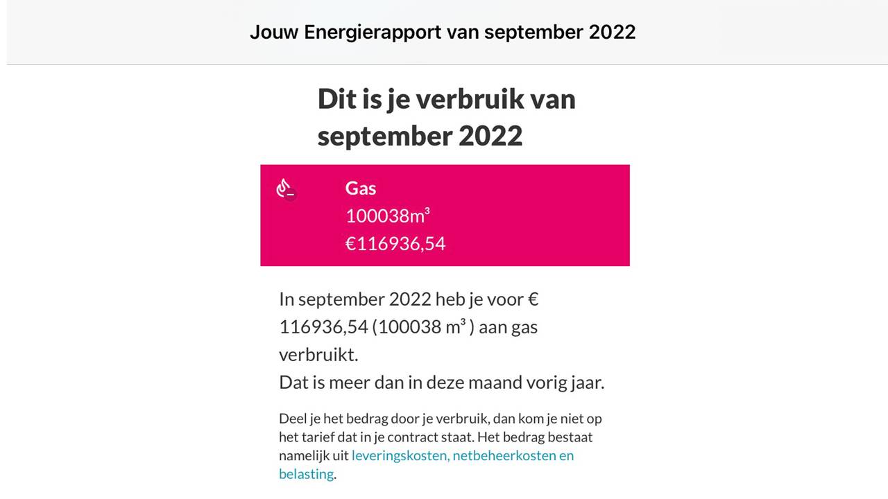 Er was in de zomer gewerkt aan de gasleiding en daarbij is iets misgegaan, zo bleek. “De monteurs hebben een totaal verkeerde meterstand doorgegeven. Daarom stond er in het maandoverzicht zo’n gigantisch bedrag. Ik weet dat ik maar zes kuub gas heb verbruikt in september en niet meer dan 100.000 kuub.”