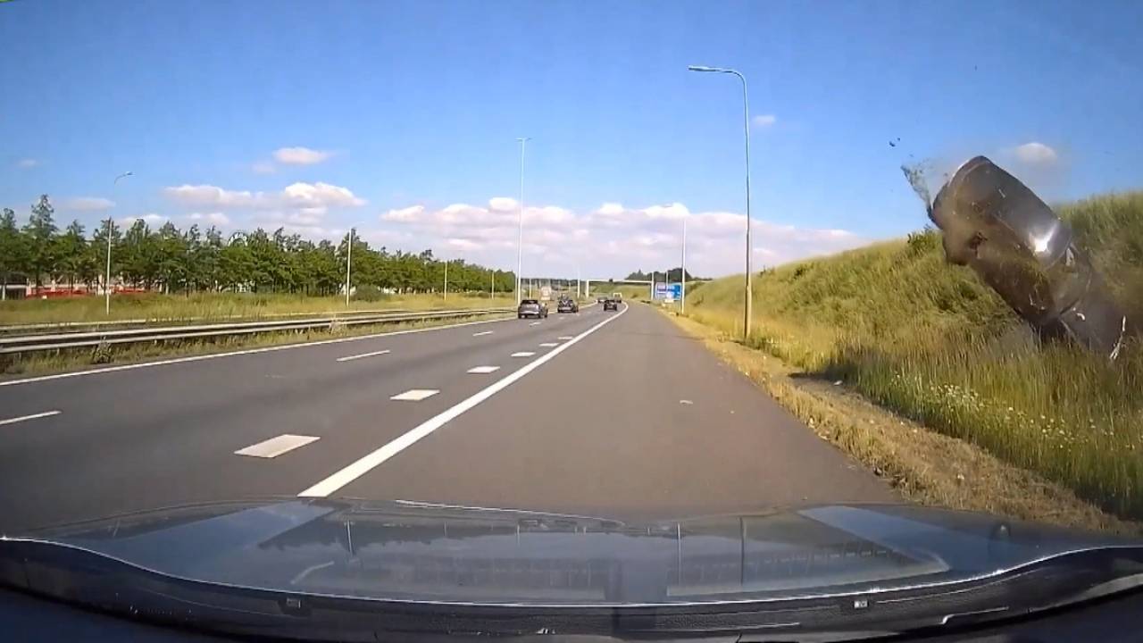 Op de A58 bij Etten-Leur werd een rustig gesprek in de auto verstoord door een levensgevaarlijke inhaalactie. De dashcam legde een Mercedes Coupé vast die de auto van rechts inhaalt. Vervolgens verloor de bestuurder vermoedelijk de macht over het stuur en raakte in de slip. Op de video is te zien hoe de auto vervolgens over de kop slaat en naast de weg terechtkomt.