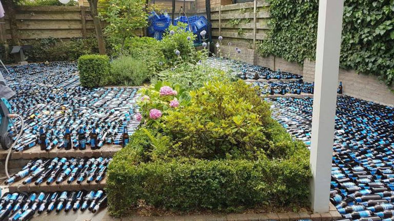Tuin met bierflesjes