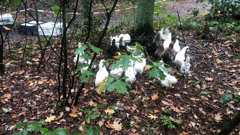 Boswachter Erik de Jonge ontdekte de dieren vorige week vrijdag na een melding. Hij durfde de kippen niet meteen te vangen vanwege de heersende vogelgriep.