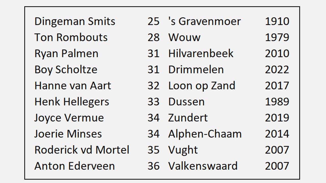 Maar de absolute koploper is Ton Rombouts, die het meest bekend werd als burgemeester van Den Bosch. Die begon in 1979 op 28-jarige leeftijd als burgemeester in Wouw.