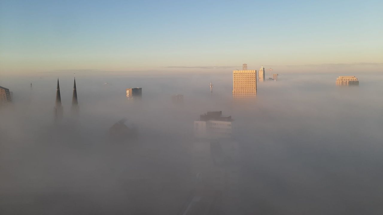 Sommige mensen hebben geluk deze vrijdag. Medewerkers van Interpolis en Achmea aan de Spoorlaan in Tilburg hadden deze vrijdagochtend een prachtig uitzicht over de mist.