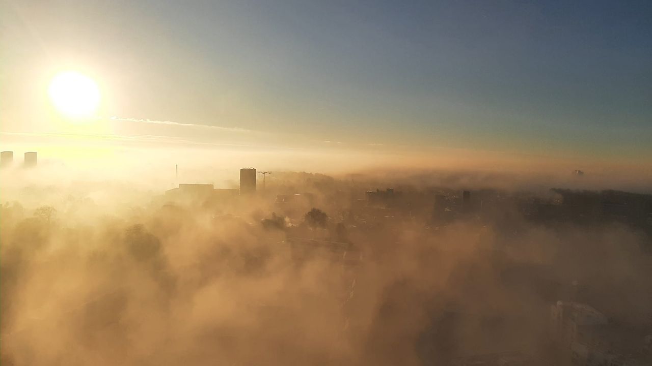 Betoverend uitzicht over de mist die over Tilburg hangt