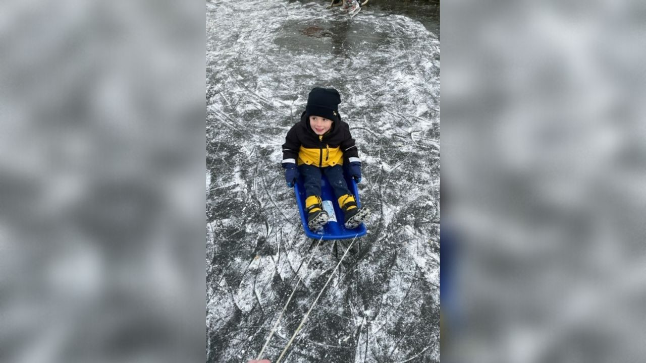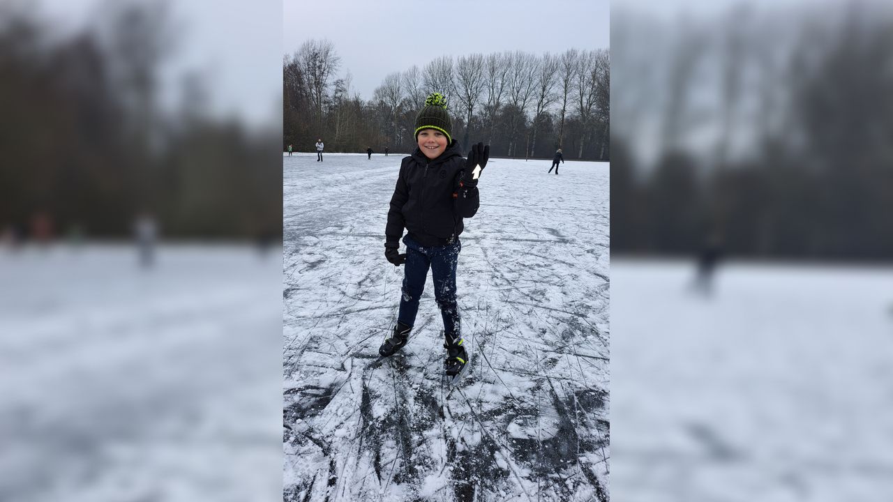 Al ruim een eeuw kan er geschaatst worden op het veld van boer Kuypers in Helmond. Ook de zoon van Yvonne trok zijn schaatsen aan en ging het ijs op.