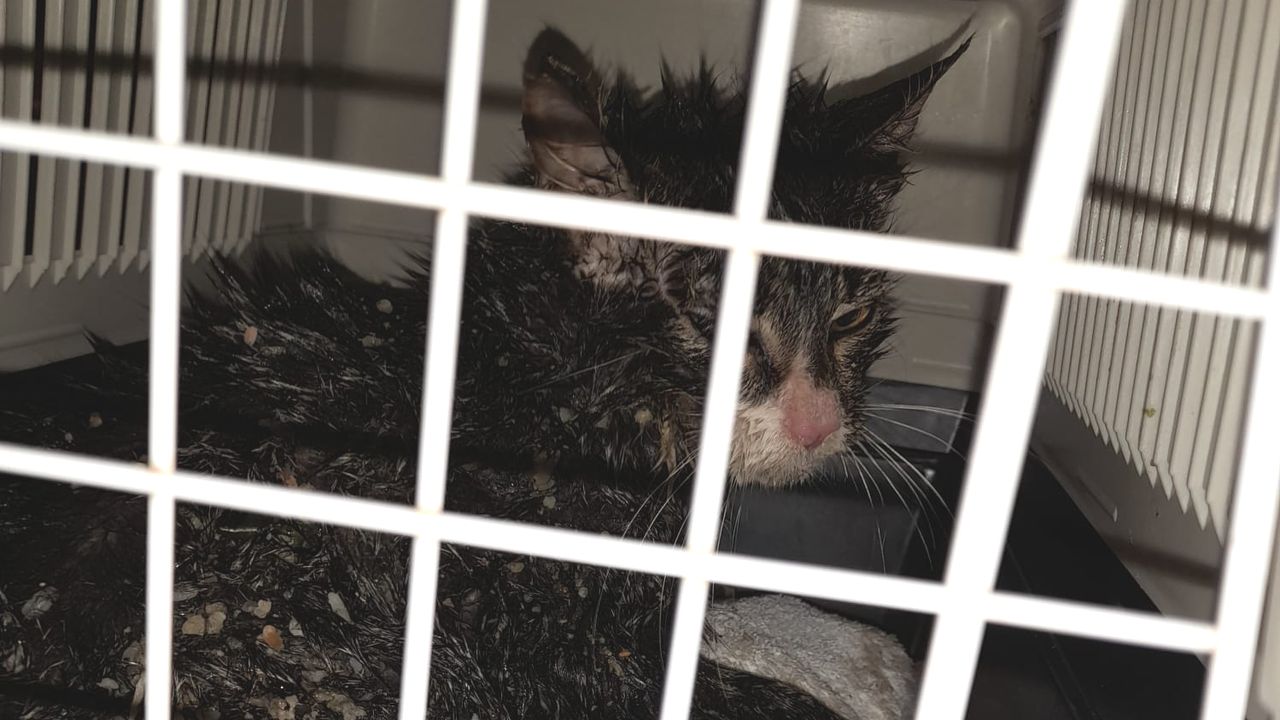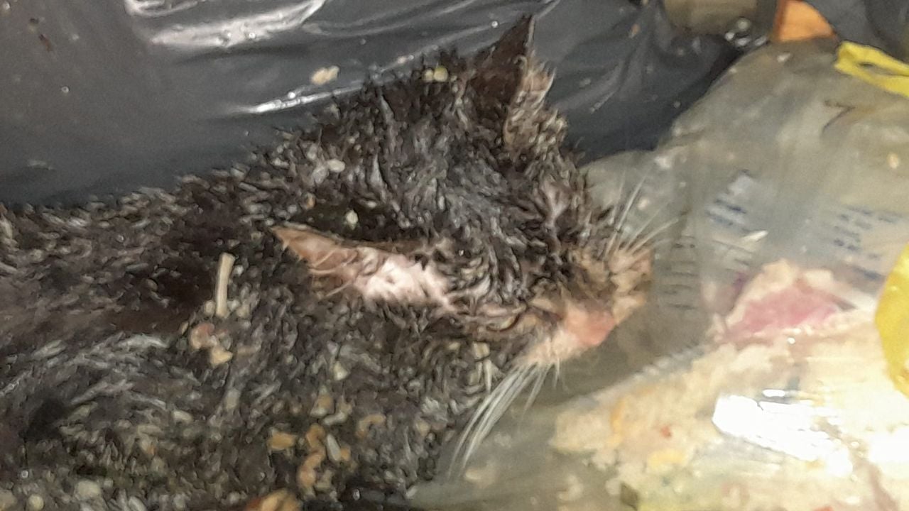 Daarna is het dier naar Dierenartsenpraktijk Berghem gebracht om het na te laten kijken. De kat stonk enorm en was onderkoeld, maar was verder in orde. Inmiddels is het getraumatiseerde beestje overgebracht naar Dierenopvang Maasland. Daar krijgt het speciaal voer om wat aan te sterken en als het katje voldoende is opgewarmd, een bad om op te frissen.