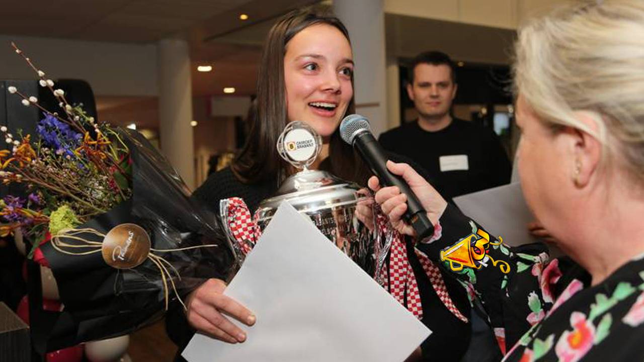 De winnares kreeg de wisseltrofee woensdagavond in het Summa College in Eindhoven uitgereikt door zanger en soapster John de Bever. Eline is de jongste winnaar bij de profs uit de geschiedenis van de worstenbroodcompetitie.