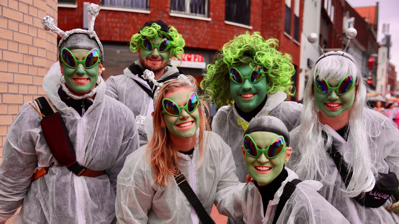 Een groep aliens is geland in Eindhoven, ze zijn collega's en afkomstig uit Utrecht. Twee van deze buitenaardse wezens komen oorspronkelijk uit Brabant. "De rest komt uit Amsterdam, Rotterdam, Spanje en Engeland. Ze wilden carnaval wel eens meemaken. En voor onze internationale collega's is dit een perfecte manier om de Nederlandse cultuur te leren kennen", vertelt een van de aliëns. De overalls hebben ze op de kop getikt bij een schildersbedrijf.