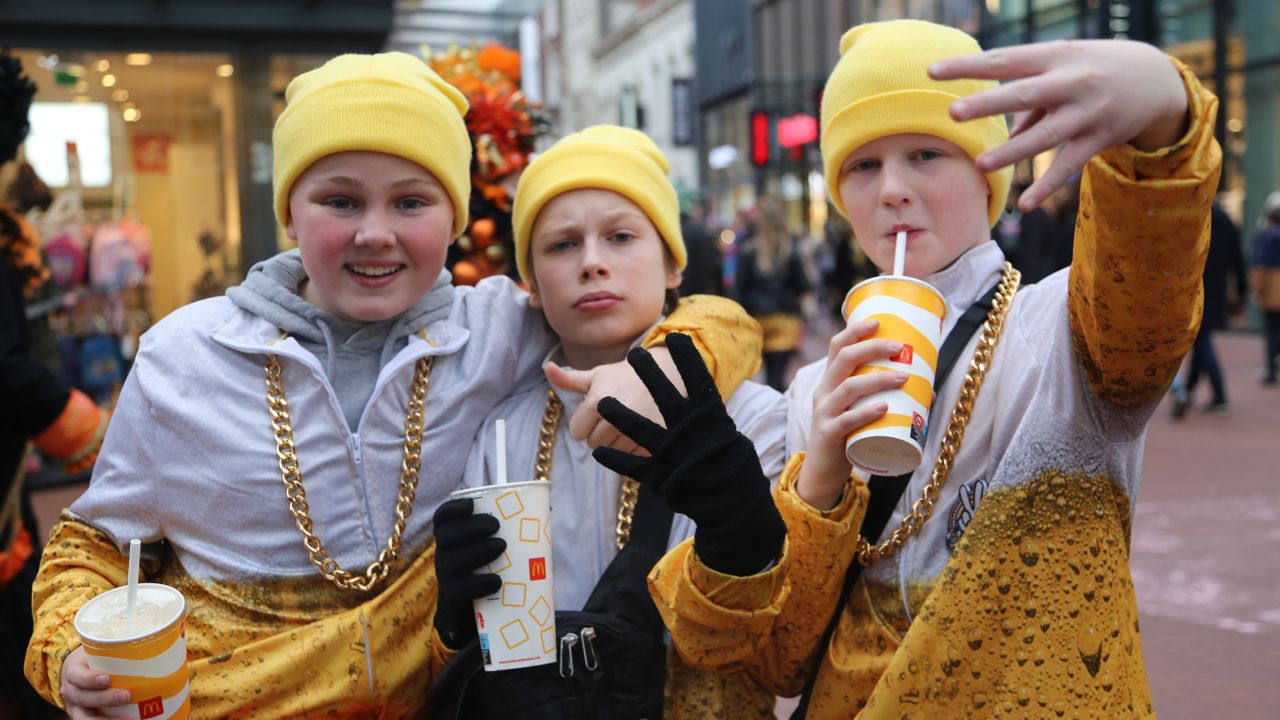 Bram (13), Finn (13) en Luuk (12) uit Eindhoven zijn echte vrienden, en dat willen ze laten zien met hun outfit. "We dragen allemaal hetzelfde, zodat mensen zien dat we beste vrienden zijn. Waarom we dit pak hebben gekozen? Gewoon, omdat het leuk is", vertelt Bram. Samen met hun ouders zijn ze op pad geweest om een mooi pèkske te scoren. En ze zijn er trots op.