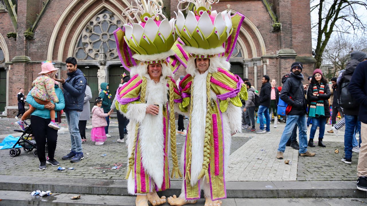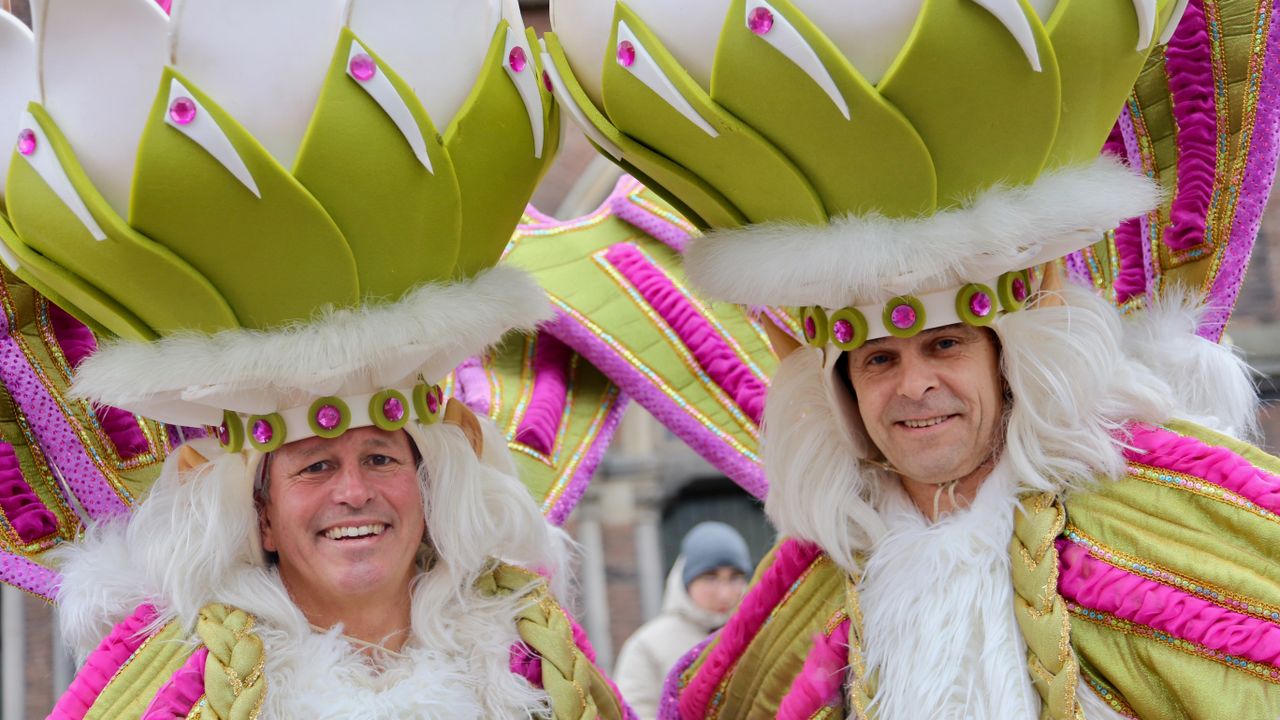 "We komen in de allerkleinste kroegjes en eigenlijk is dit grote pak nergens een probleem. Mensen gaan voor je opzij en vinden het leuk. We krijgen een heleboel aandacht en waardering." Maar wat stellen ze eigenlijk voor in het pak? "Ja, goeie vraag. Wij zeggen altijd gekscherend dat we bij de Efteling zijn ontslagen of uit de Droomvlucht zijn gevallen. Maar het heeft iets met uien te maken, want het dorp waar ze zijn gekocht, heet met carnaval Uienrijk."