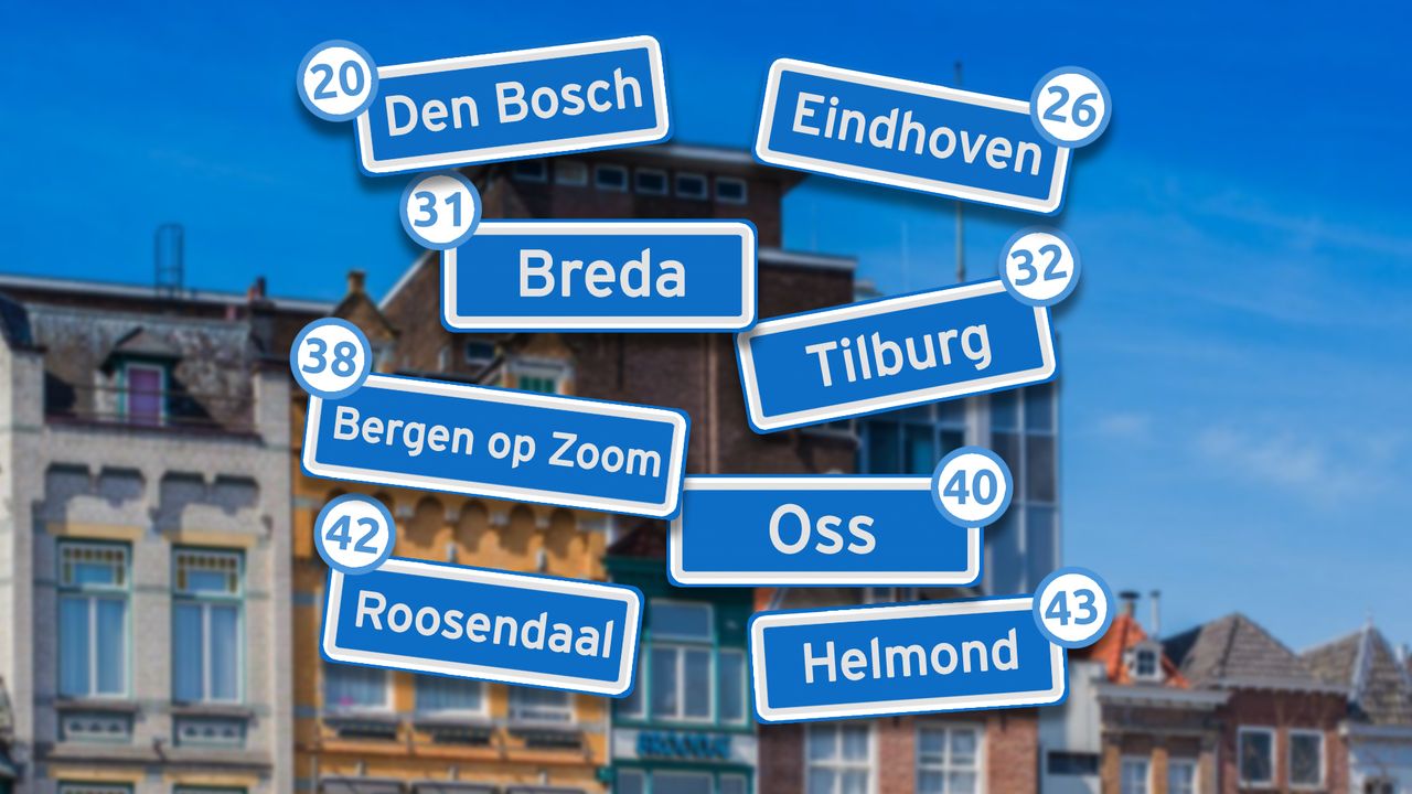Amsterdam staat met stip op nummer één. Daarna volgen Amstelveen, Leiden, Utrecht en Leidschendam. De populairste Brabantse stad is Den Bosch, op plek 20. Daarna komen Eindhoven, Breda, Tilburg en Bergen op Zoom. Helmond scoort in Brabant het slechtst.