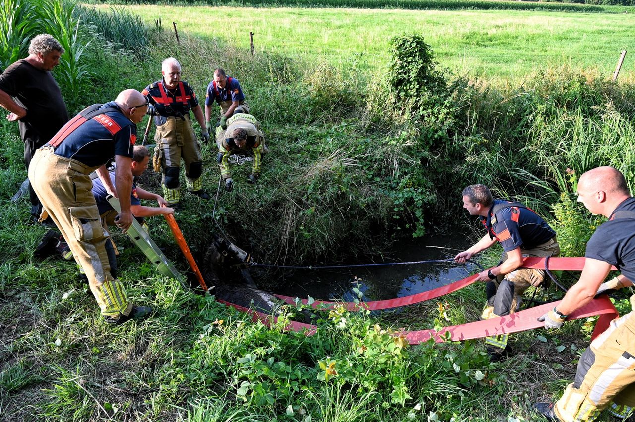 De brandweer probeerde rond kwart voor zeven het paard eerst uit de sloot te krijgen met een halster en een tweetal touwen om hem er vervolgens met mankracht uit te trekken.