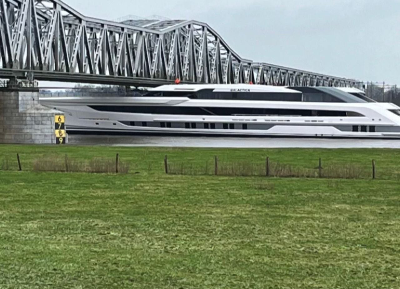 Begin vorig jaar ging het helemaal mis toen het grootste jacht van Heesen over de Maas werd gesleept. Het water stond te hoog en de Galactica kon niet onder de Hedelse spoorbrug door en moest omkeren.