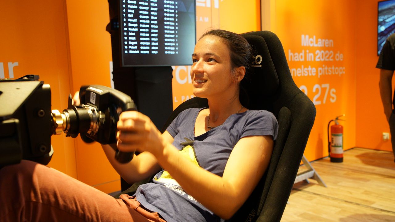 Naast hem zit Indra achter het stuur. Hij is wel fan van de Britse coureur en was meteen enthousiast toen hij hoorde dat het team naar Eindhoven zou komen. “Vandaag ben ik eerder gestopt met werken, zodat ik hieraan mee kon doen.” Indra heeft thuis ook een simulator en staat inmiddels bovenaan in de ranking. “Je kan kaartjes winnen voor Zandvoort, dus ik blijf doorgaan om mijn score te verbeteren.”