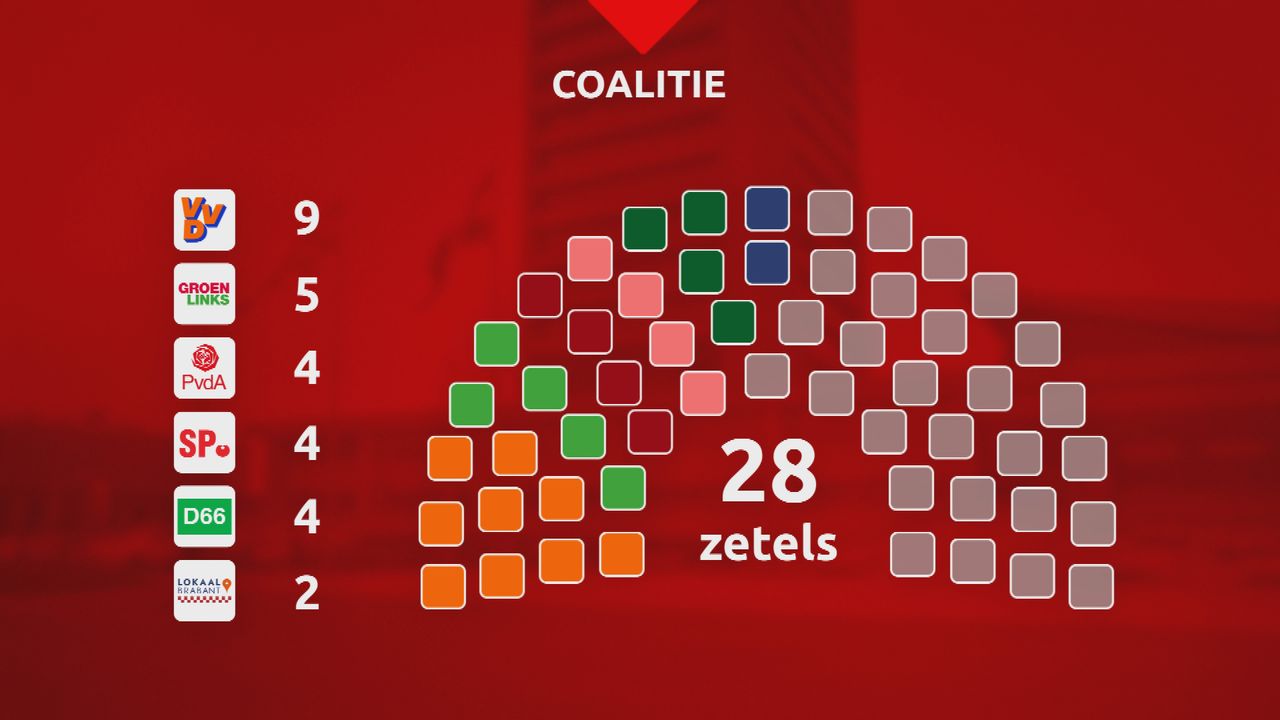 De overgebleven partijen zijn verder gaan praten met D66, de SP en Lokaal Brabant om aan een meerderheid in Provinciale Staten te komen. De zes partijen hebben samen 28 van de 55 zetels.