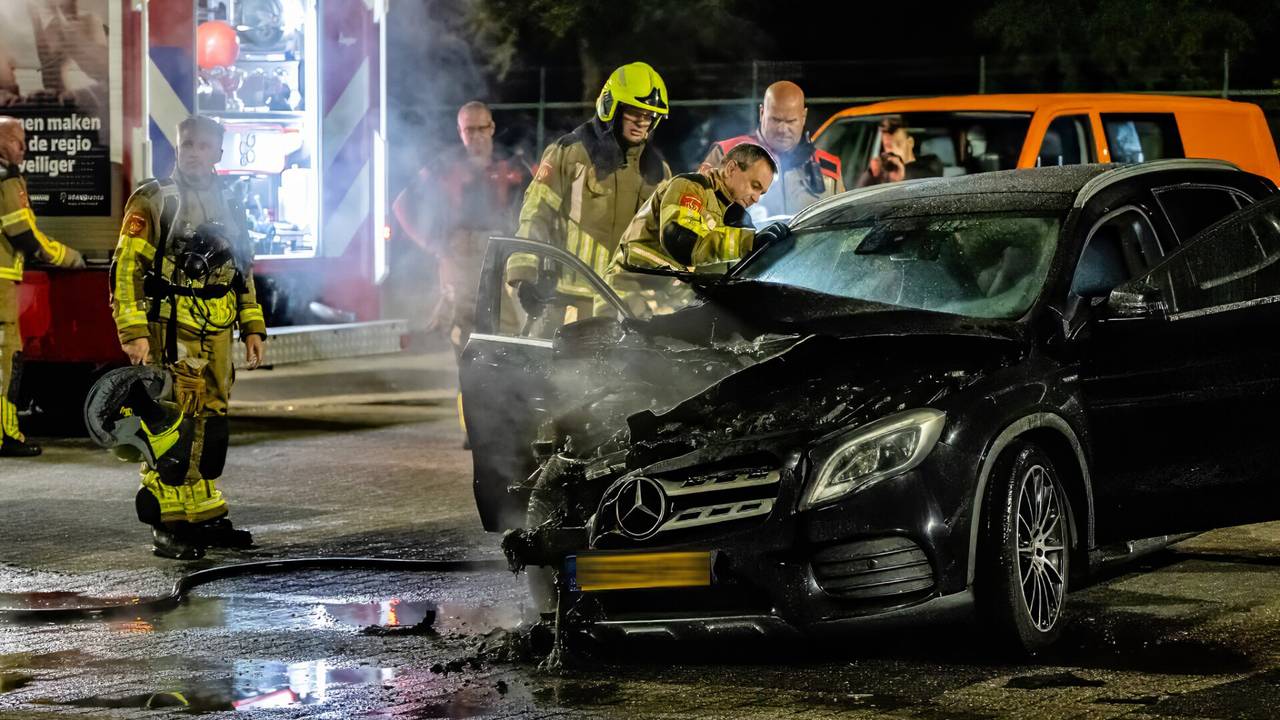 Auto in brand bij sportschool