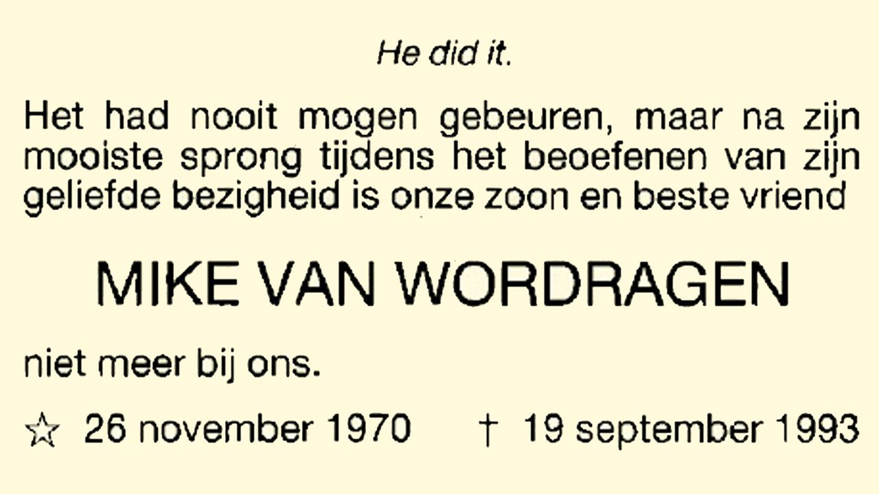 Daarna volgde een zware gang naar de moeder van Mike in Den Bosch. “Mike was haar enige kind. Zij was nooit zo blij met zijn hobby en toen ze mij voor de deur zag staan, samen met de politie, wist ze al hoe laat het was. Ze schreeuwde en gilde meteen.”