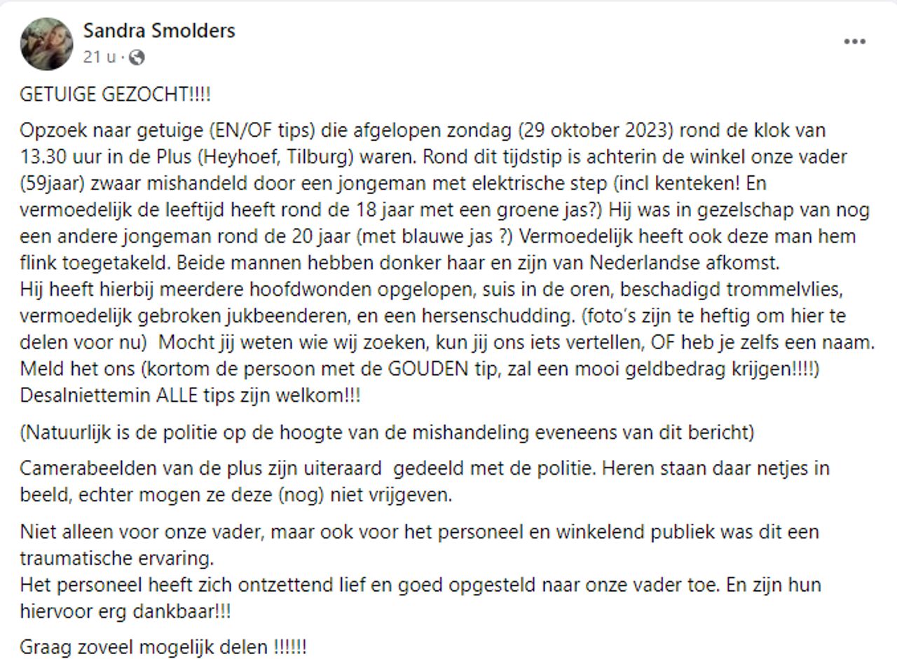 Sandra, een dochter van Alwi, zette een oproep op Facebook om de getuigen van de mishandeling te vinden.