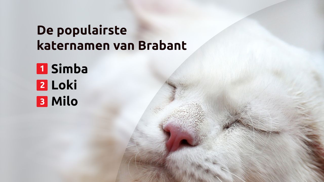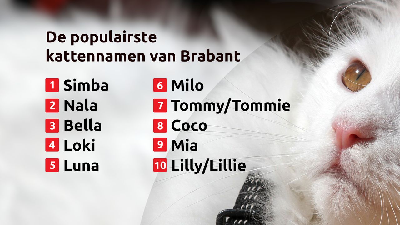 Bij de Brabantse katers zijn Simba, Loki en Milo de populairste namen, bij de poezen staan Nala, Bella en Luna bovenaan.