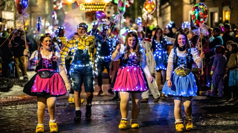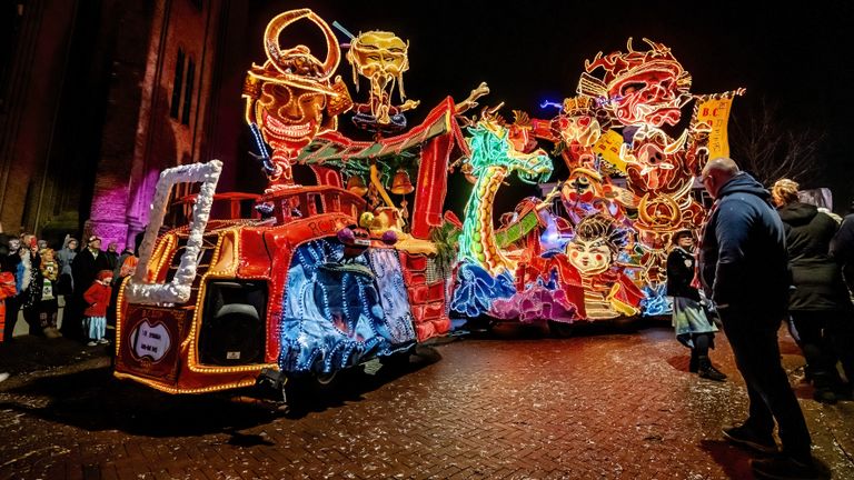 De wagens in de lichtjesoptocht waren weer spectaculair met lichteffecten, vuurwerk, vlammenwerpers en rookkanonnen.