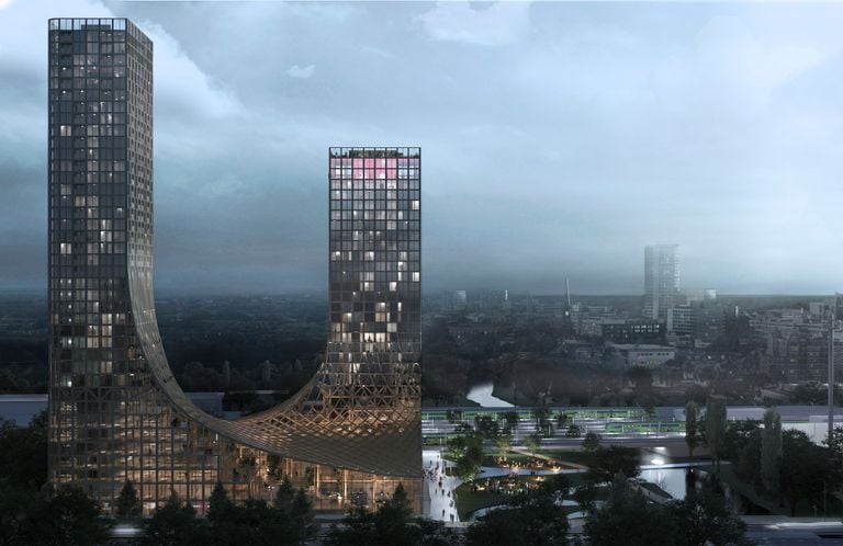 De twee torens worden 133 en 96 meter hoog en worden met elkaar verbonden door een grote centrale ruimte waarin onder andere horeca komt. Verder krijgen de gebouwen ook een grote binnentuin die voor iedereen toegankelijk is.