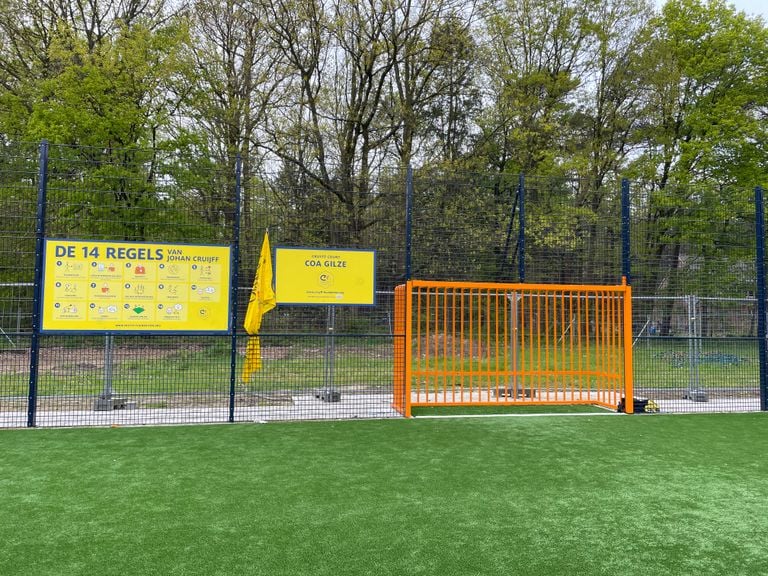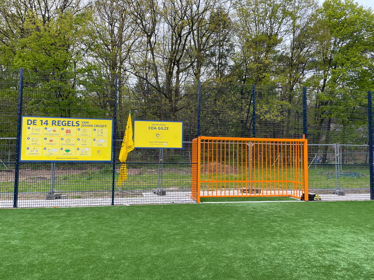 Het moderne voetbalveldje, zoals er op de wereld honderden precies zó gebouwd zijn, werd op 25 april geopend. Dat is ook de geboortedag van Johan Cruijff. De aanlegkosten van anderhalve ton werden voor het grootste gedeelte opgebracht door een goede doelenstichting van het Amsterdams advocatenkantoor Jones Day.