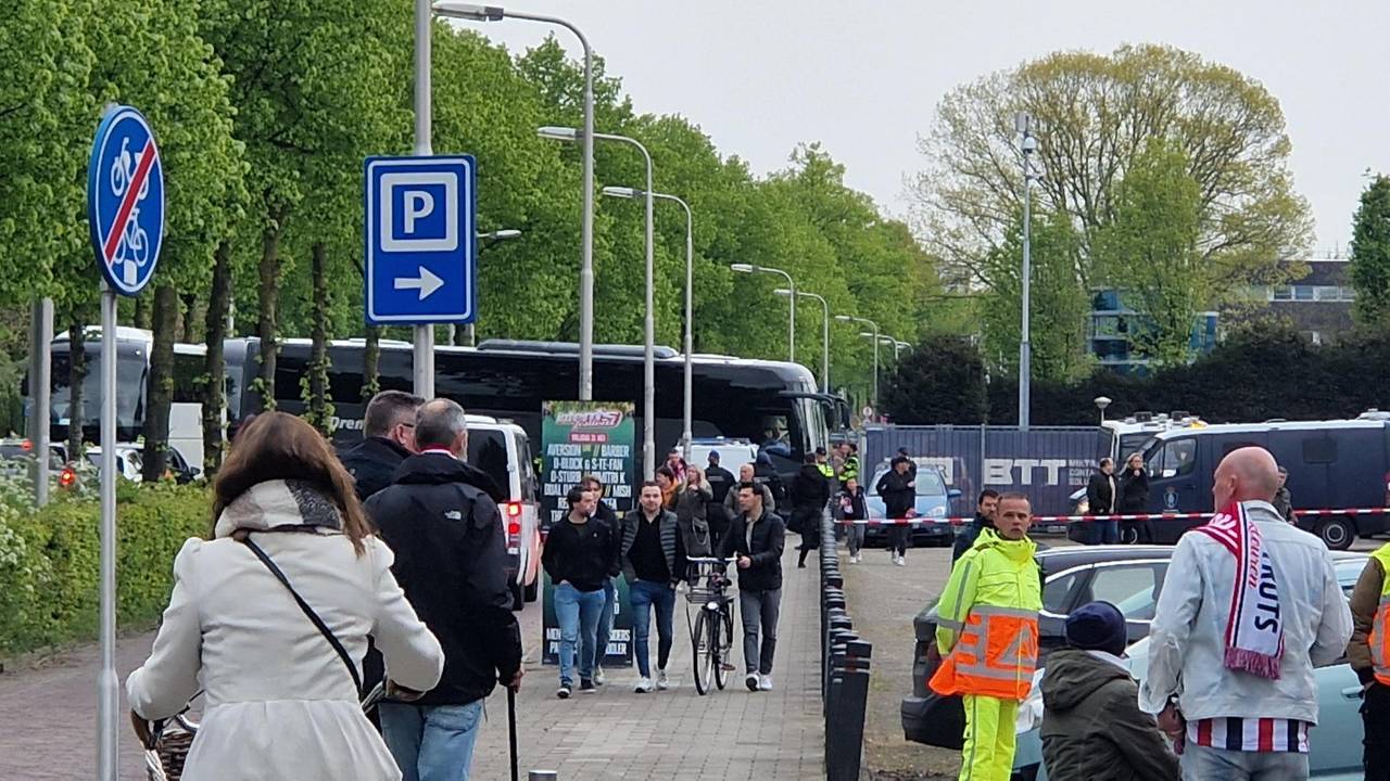 Vier bussen met uitsupporters van FC Groningen zijn onder politiebegeleiding naar het stadion gebracht. Ook voor hen is dit natuurlijk een belangrijke wedstrijd.